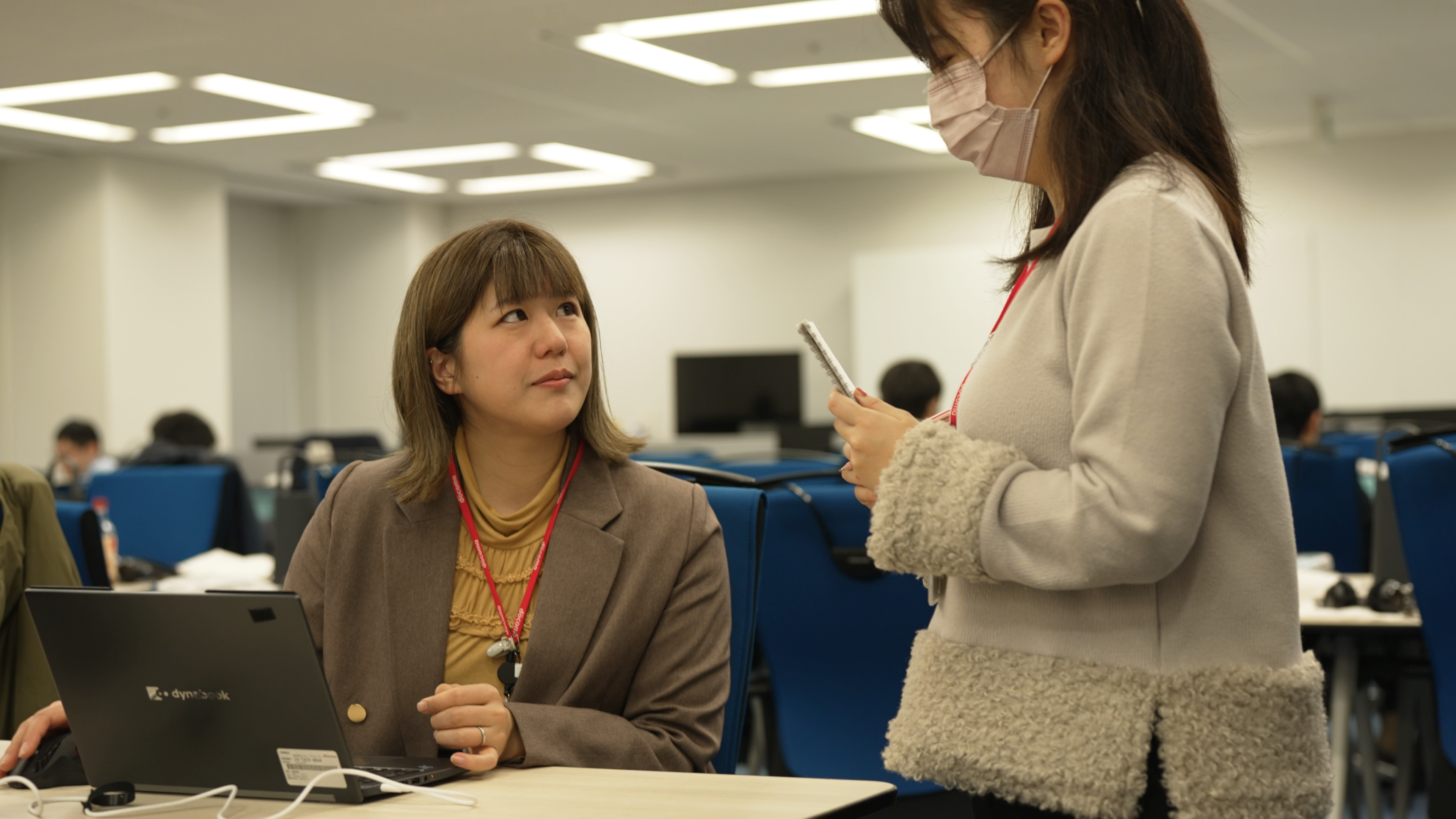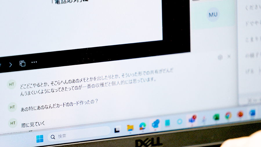 現在は、メンバーが進めている業務の中で判断に迷ったり、不安を感じたりした際に一緒に話し合い、解決に向けたサポートを行っています。 また、委託元の担当者からの連絡対応や業務の進捗共有など、メンバーと委託元の間をつなぐ橋渡しの役割も担っています。 例えばアンケート集計の業務では、対応方針をどうするか、自由記述の内容をどのように判断するかなど、判断に迷う場面が出てくることがあります。そのようなときには一対一で話を聞いたり、必要に応じてチームミーティングを開催し、方向性を一緒に考えていきます。
